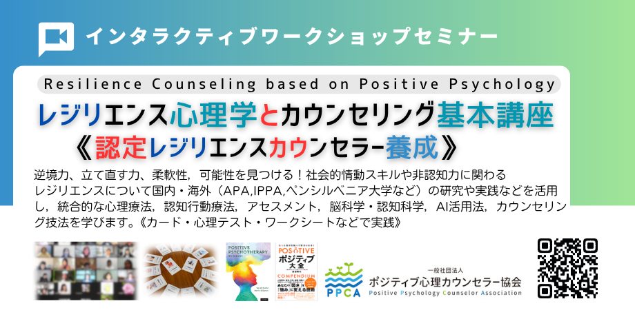 注目■3月21-22日(2026):【レジリエンス心理学とカウンセリング基本講座】:【認定レジリエンスカウンセラー養成講座】※両日とも9:00~17:30